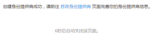 单击“确定”。创建身份提供商成功,界面提示如下图所示:
