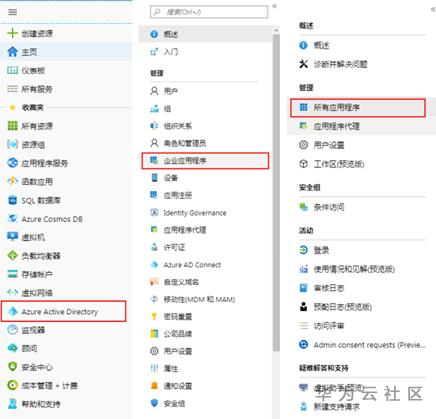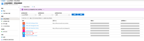 在Azure首页左上角导航栏选择“Azure Active Directory > 企业应用程序 > 所有应用程序”。