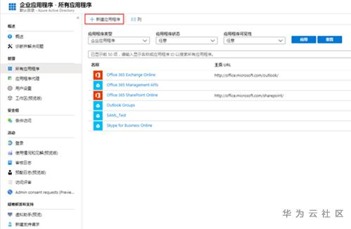 在您的AD租户实例面板,进入“Enterprise applications”,并选择您之前为华为云对接所创建的应用程序,如2-5创建的“SAML_Test”或“华为云”。