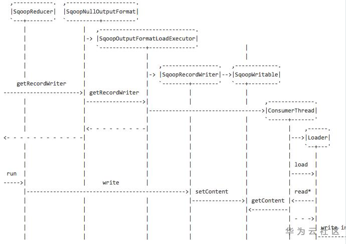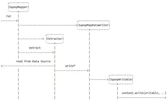 SqoopInputFormat会调用Partitioner类的getPartitions方法生成Partition列表封装到SqoopSplit中。每个Partition分片会交给一个Mapper任务执行。每个Mapper启动一个extractor线程从数据源端抽取相应的partition数据和loader线程load数据到目的端。并通过SqoopMapDataWriter进行序列化和反序列化操作。