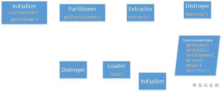 如上图,sqoop的etl流程主要被划分为Initializer、Partitioner、Extractor、Loader、distroyer等几个环节,