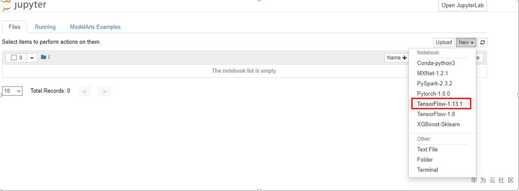 进入notebook后创建一个tensorflow 1.13的ipynb