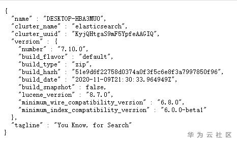 或者打开另一个终端 执行:curl 'http://localhost:9200/?pretty' ,与上一种方式启动成功信息显示一致。(windows可以安装cURL)。