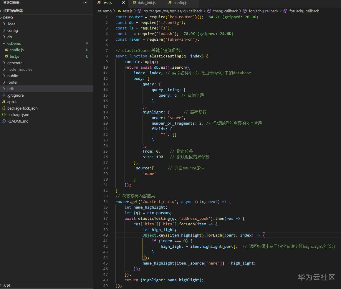 3、这里的框架使用的是koa,先写配置文件,代码如下: