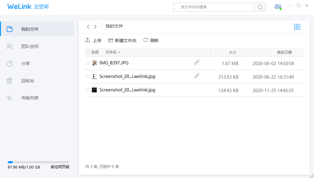 - WeLink云空间支持桌面PC版和移动版,两边文件数据自动同步,充分考虑便捷性,登录WeLink后,PC版独立设计了云空间图标,点击即可登录云空间,移动版云空间也支持在线编辑,上传下载,分享文件等操作。