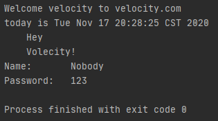 Template template = ve.getTemplate("Hellovelocity.vm");