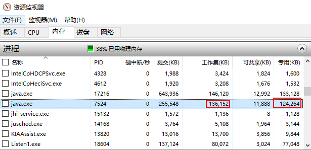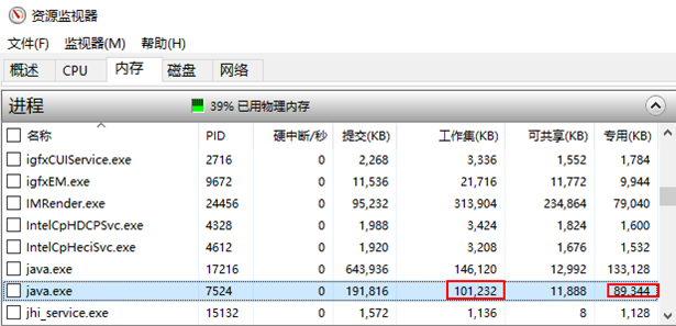 工作集内存才是程序真正占用的内存,而工作集内存=可共享内存+专用内存