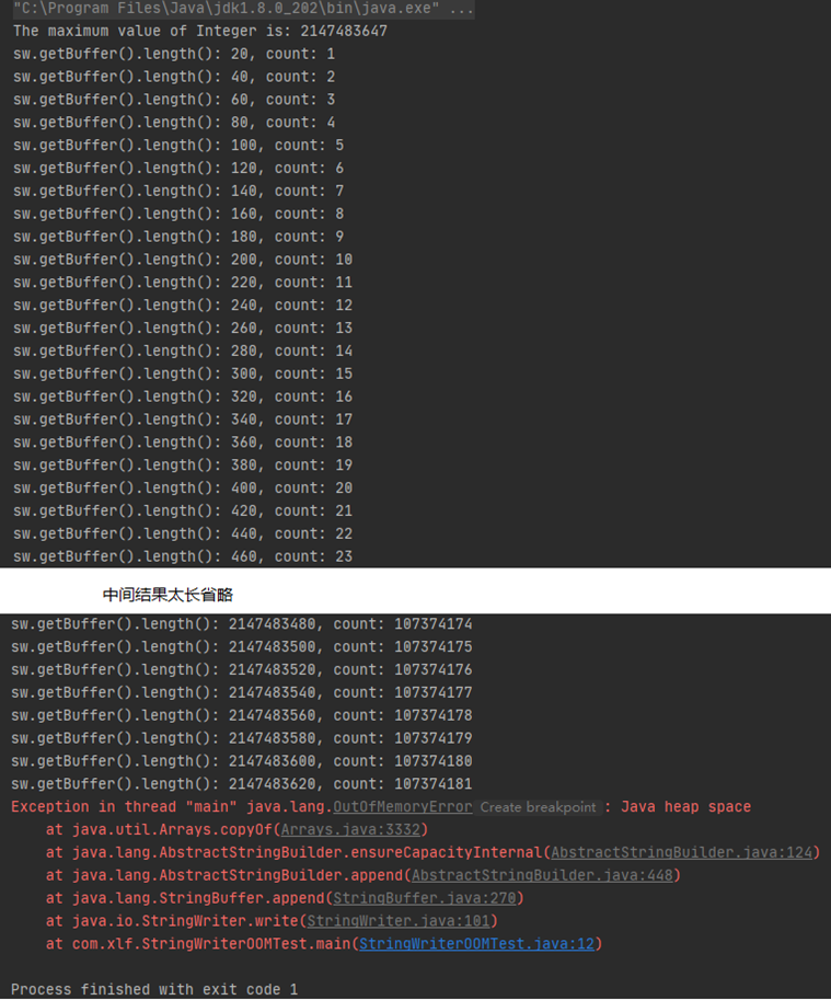 将如此巨大的字符量填充进StringWriter对象里面,至少需要10的380多次方GB的内存空间,这几乎是不现实的。因此OOM溢出是必然的。