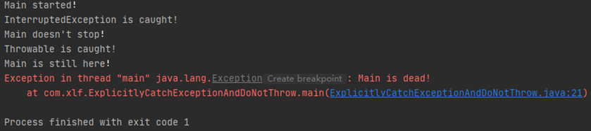 - 线程结束可以是正常结束,也可以是抛出不被catch的Throwable对象而异常终止