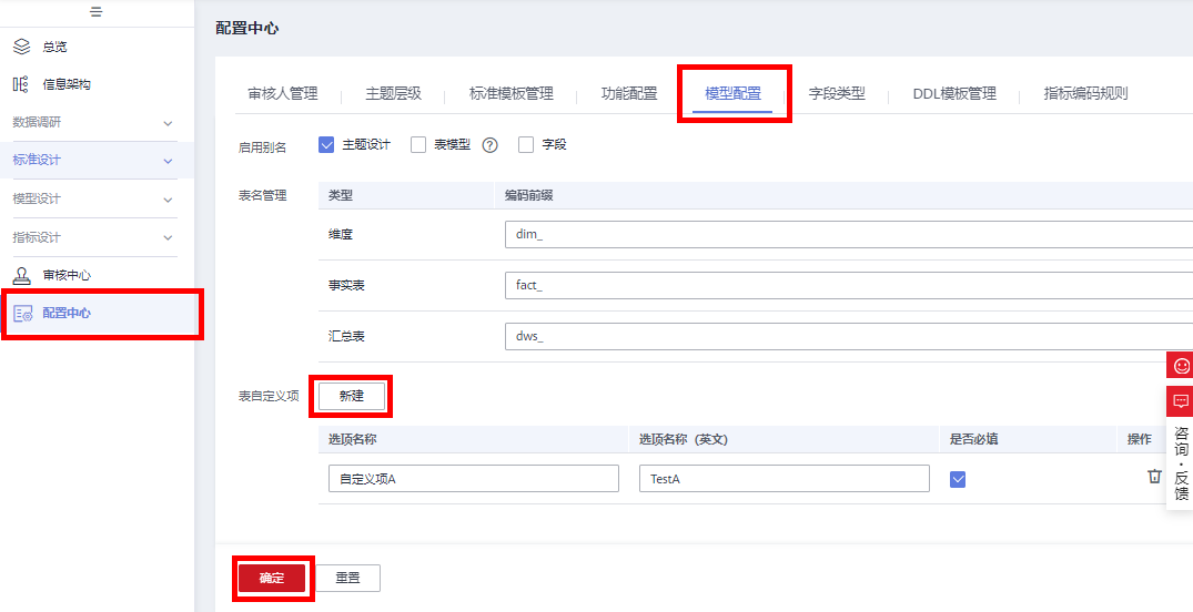 【摘要】 在规范设计-模型设计功能中,用户除了可以使用我们内置的表属性项以外,也可以按需使用自定义项功能,为表添加属性。表的自定义项也会作为用户的业务资产属性,同步至数据资产模块。目前,支持该项功能的对象有:关系建模-业务表、维度建模-维度(表)、维度建模-事实表以及维度建模-汇总表。如何使用该功能?请参考以下步骤:在规范设计左边导航栏中,选择进入配置中心;在顶部标签中选择模型配置;点击"表自定义项"...