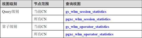 系统提供了query级别和算子级别的资源监控实时视图用来查询实时TopSQL。资源监控实时视图记录了查询作业运行时的资源使用情况(包括内存、下盘、CPU时间和IO等)以及性能告警信息,这里相关的视图如图3.1所示。
