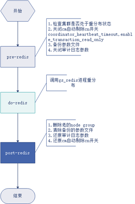 post-redis:重分布后置收尾工作,主要包括删除老的nodegroup、清除备份的参数文件、还原审计开关、还原cm自动剔除cn开关。