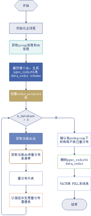 gs_expand调用gs_redis实际完成用户表的重分布。gs_redis的总体流程如上图所示。