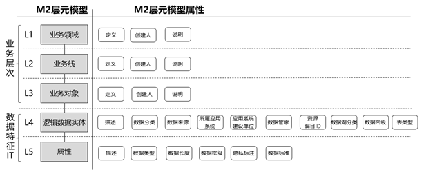 M2层除了对业务条线做了抽象以外,还定义了业务属性,帮助使用者获取库表、API等底层结构依赖的业务附加属性,这些类内容通过底层的系统是无法获取的,具体需要附加哪些属性,需要数据管理者结合业务场景做梳理,如下是数字政府业务模型包中提供的通用属性,供参考;
