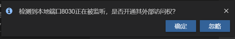 - 等待调试实例启动,右下角弹出端口监听提示,我们点击确定。