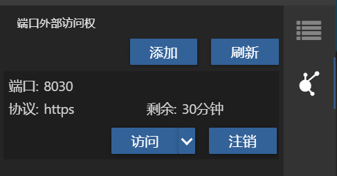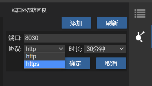 - 在弹出的端口外部访问权中给实例的监听端口添加外部访问权,注意:这里的协议需要选择https,添加完成之后如右图所示。