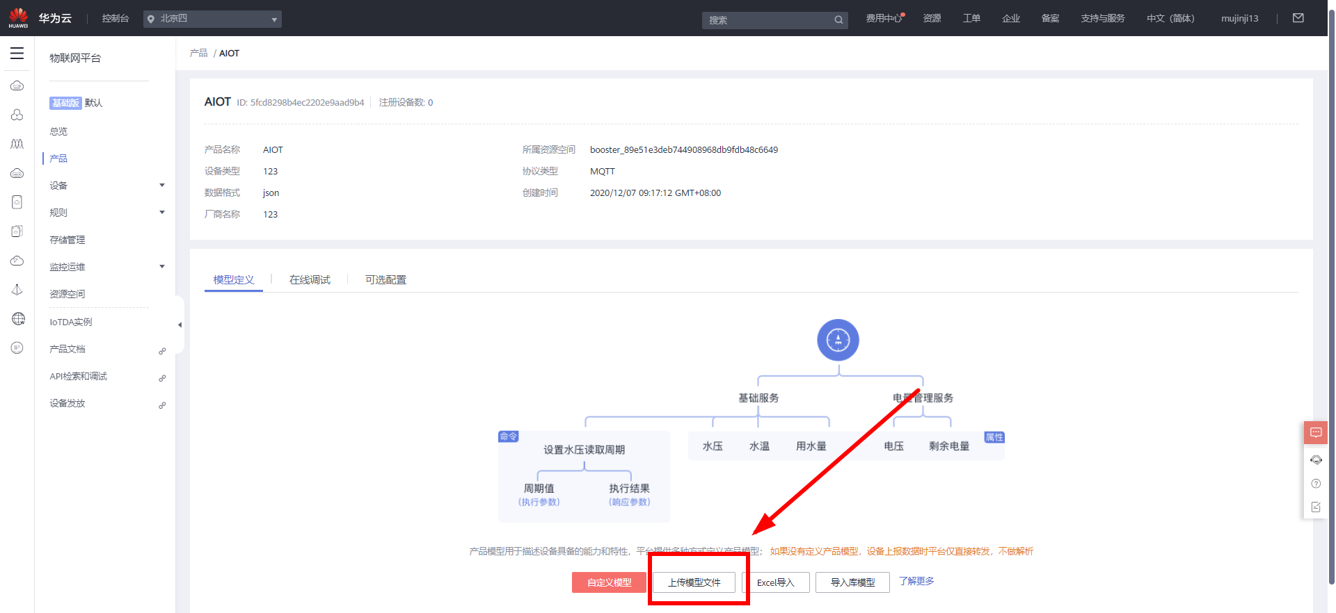 打开刚才创建的产品⇒上传模型文件。如下图所示: