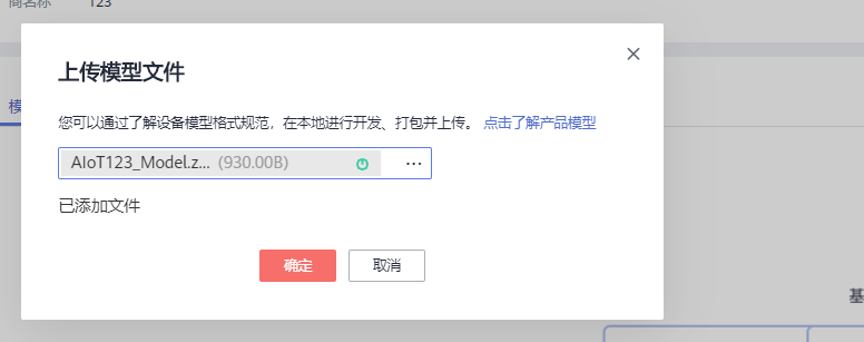 选择本地下载好的AIoT123_Model.zip文件(下载链接请看本文开始)⇒点击确定会显示上传成功⇒点击确认。如下图所示: