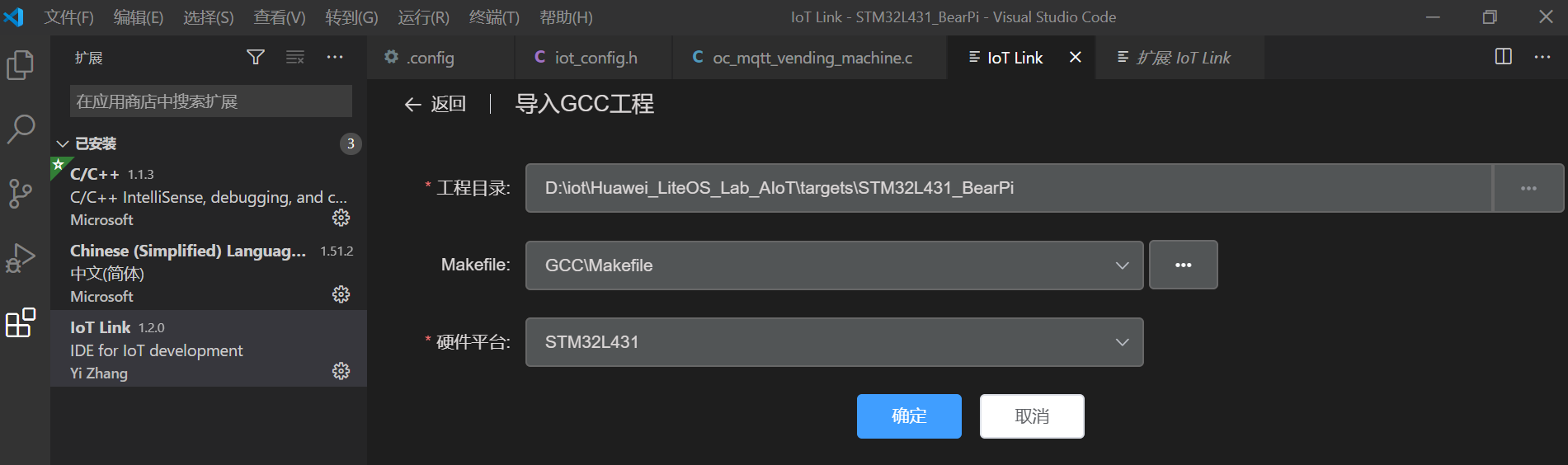 makefile:D:\iot\Huawei_LiteOS_Lab_AIoT\targets\STM32L431_BearPi\GCC,选择makefile文件