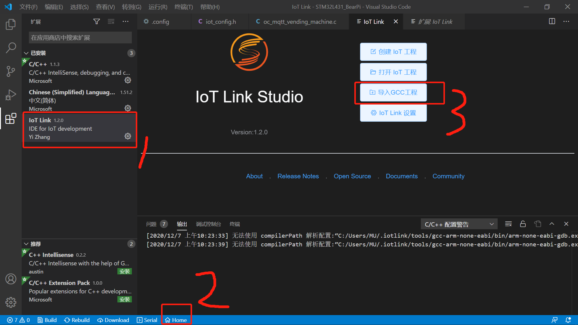 下载Huawei_LiteOS_Lab_AIoT工程文件(下载链接请看本文开始部分),解压。打开VSCode导入工程,如下图所示: