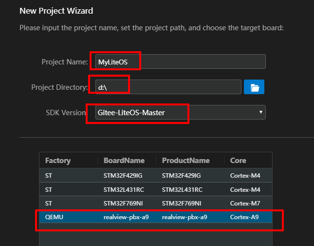 开发板列表:选择Qemureakview-pbx-a9开发板