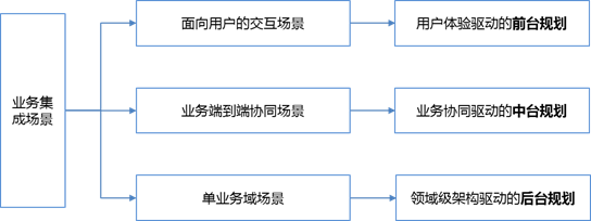 2)在中台构建的高效协同场景下,抽象出面向用户的交互场景,以用户体验驱动前台规划