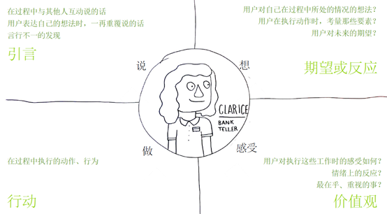 • 用户同理心地图(Empathy Map是用户触点分析的需求来源,一切的一切都需要真正站在用户自身的角度来设计、权衡和选择;