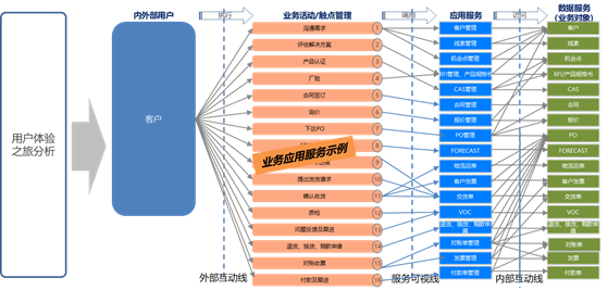 • 按照一定的原则,识别用户交互触点需要调用的业务应用服务和数据服务,并作为对中台应用服务市场的需求;