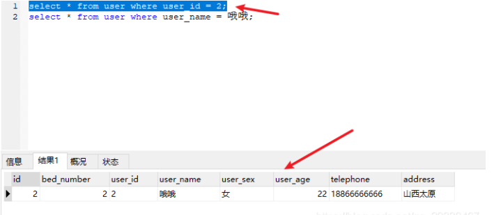 - 然后进行查询操作 ,发现查询 `user_id` 时不加引号也可以,这。。。