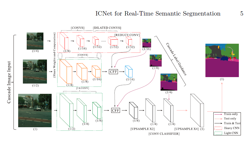 ICNet 主要用于图像实时语义分割,能够兼顾速度和准确性。 ICNet的主要思想是将输入图像变换为不同的分辨率,然后用不同计算复杂度的子网络计算不同分辨率的输入,然后将结果合并。