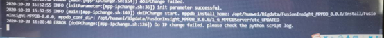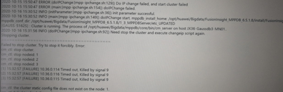 修改mpp数据库内核软件的IP信息报错,可分析如下日志: