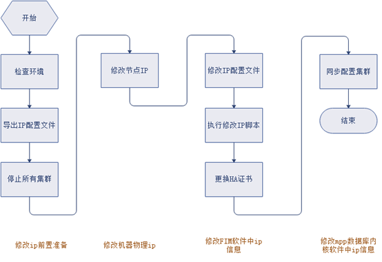 修改IP几个关键步骤有修改机器物理IP,修改FIM软件IP信息,修改数据库软件IP信息。修改机器物理IP由硬件侧来保证。