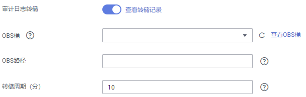 - OBS路径:在OBS中存储审计文件的自定义目录。多级目录可用“/”进行分隔,不能以“/”开头。路径取值范围:1~50个字符。如果填写的OBS路径不存在时,系统会先创建该OBS路径再进行转储。