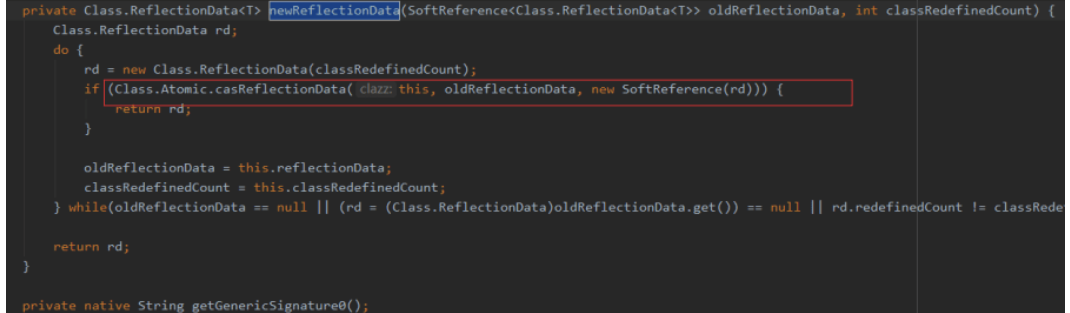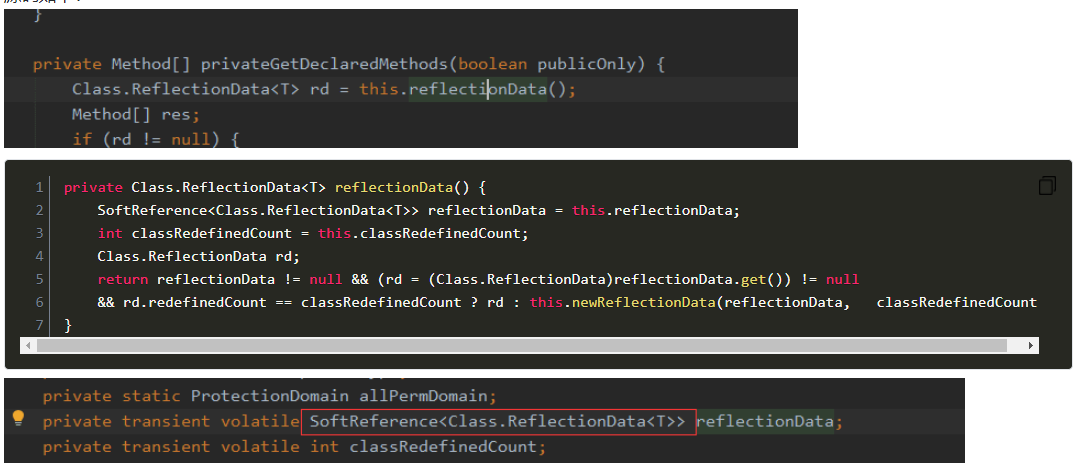 如果reflectionData被回收之后,又执行了反射方法,那只能通过newReflectionData方法重新创建一个这样的对象了
