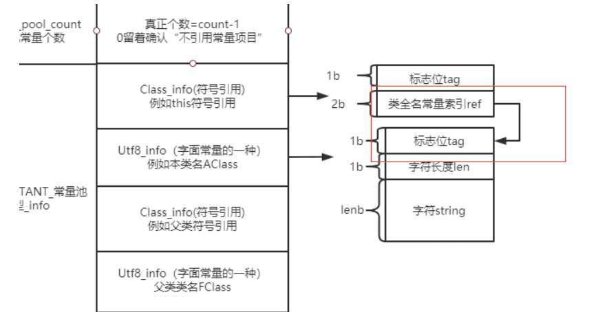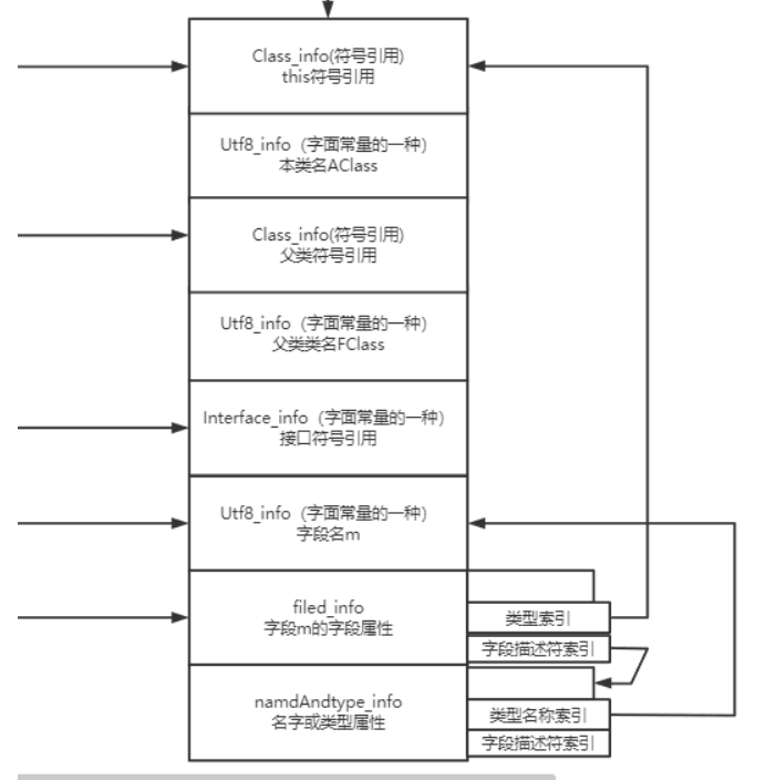 然后class文件中如果想要表示某些关系比如接口啊父子类啊, 都会从这个池子里找引用或者字符串。