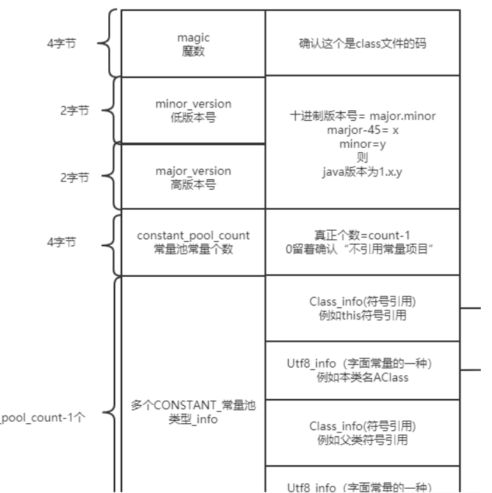 可以看到版本号之后就是常量池个数和常量池了。