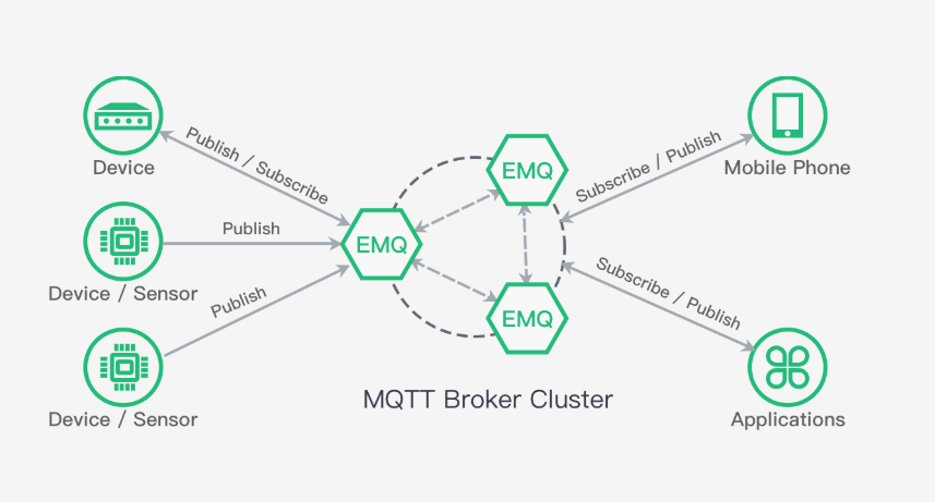 EMQ X 设计目标是实现高可靠,并支持承载海量物联网终端的MQTT连接,支持在海量物联网设备间低延时消息路由: