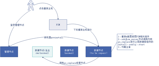 节点替换&实例修复几个关键步骤有新节点preinstall,重装&配置底层FIM相关组件,故障节点install,config,start。