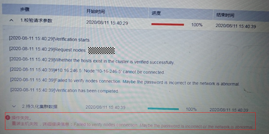 2.2.1 重装主机在第一步校验参数报错Failed to verify nodes connection.
