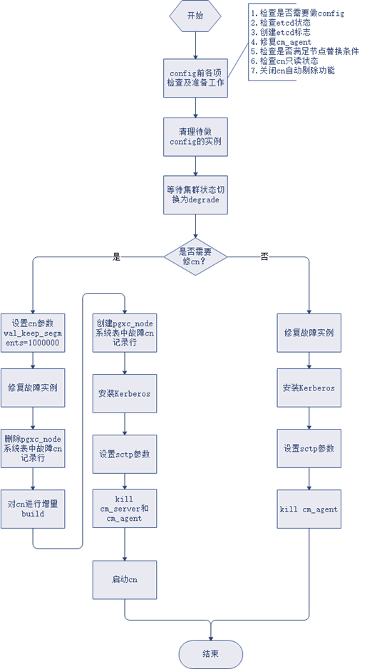 检查是否需要做config。检查当前节点GaussReplace.dat文件,如果不是start,则需要做config。
