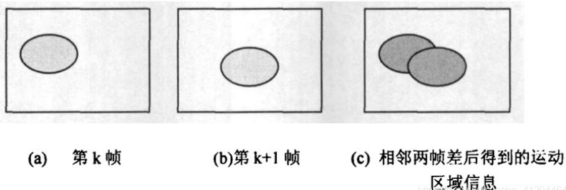 如图可见,由目标运动引起的运动变化区域,包括运动目标在前后两帧中的共同位置(图中黑色区域)、在当前帧中新显露出的背景区域和新覆盖的背景区域三部分。