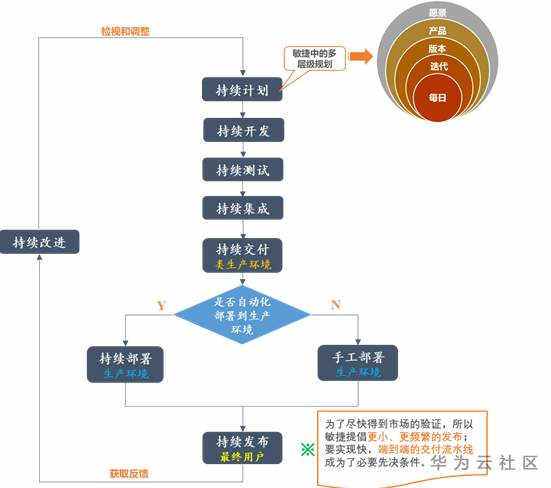 在敏捷产品整个开发过程每个阶段都是持续进行的,结合开发过程图我们理解一下敏捷中的持续计划,过程图如下所示。