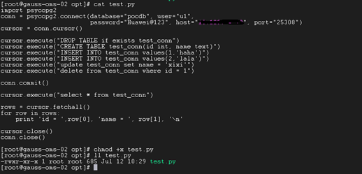 步骤1 连接服务器:*.*.*.* root/*****,或者直接用omm用户连接,omm/******;