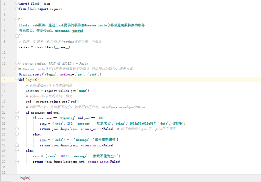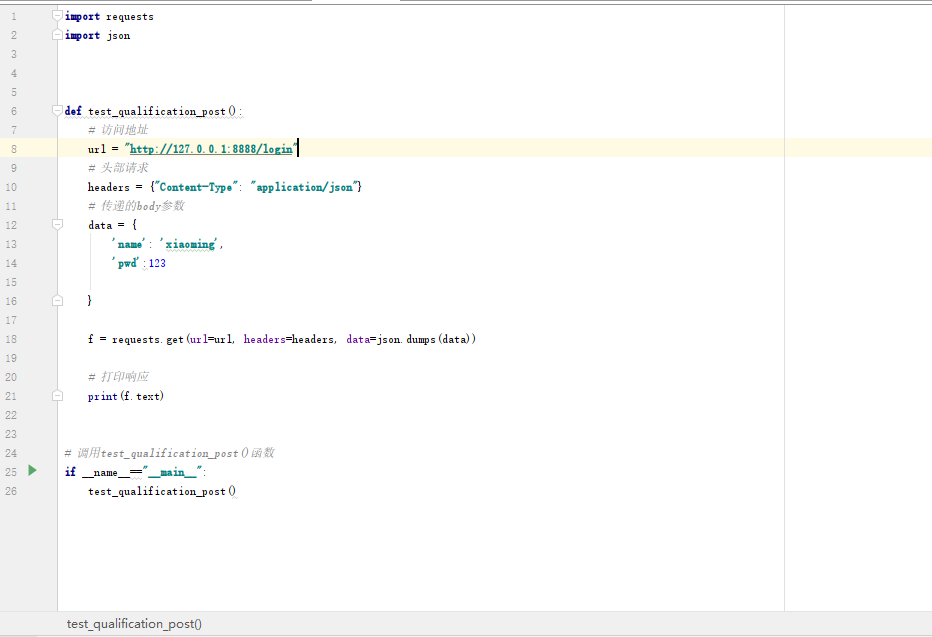 自己编写脚本进行进行登录的接口测试,这里使用的是python+requests,如图: