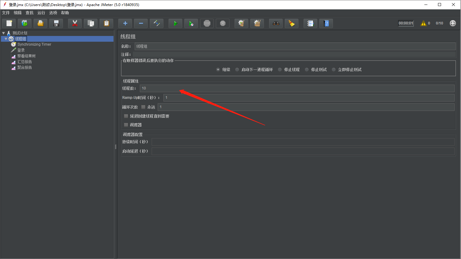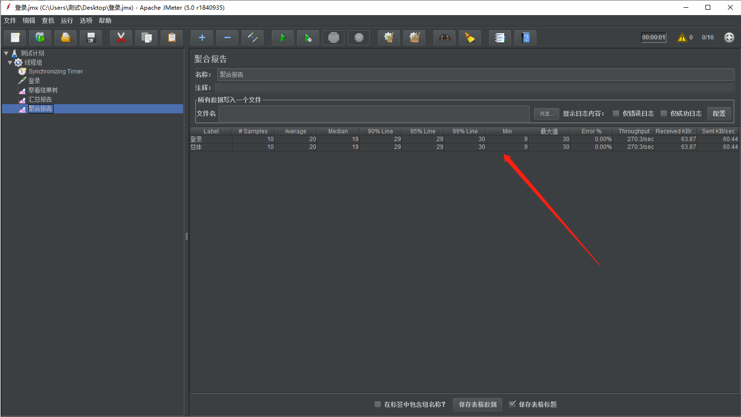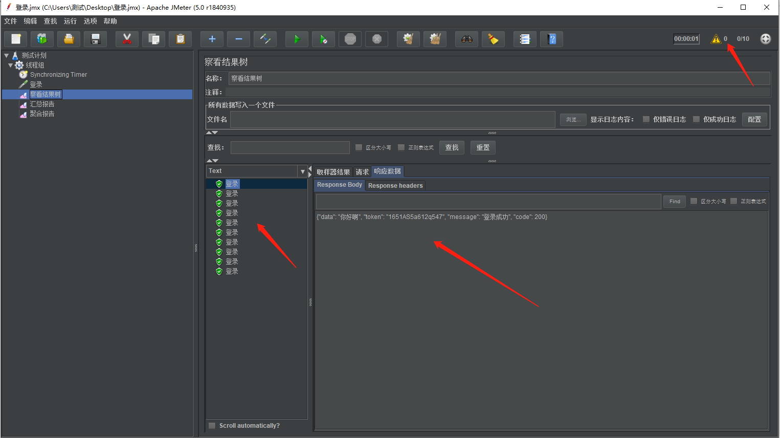 这里对一个接口并发十次,但是真正意义的登录性能测试,是多个用户进行登录。这里条件限制就用一个接口进行登录的并发测试。