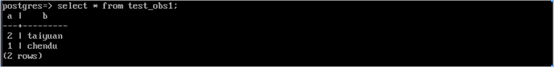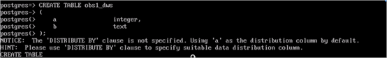 create table test_obs(a int, b string) row format delimited fields terminated by "," stored as textfile location "obs://obstest4/test_obs";