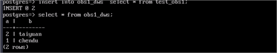5. 创建一个OBS外表,OBS外表是只读的,只能用于查询操作,可直接使用SELECT查询存储在OBS上的数据。。
