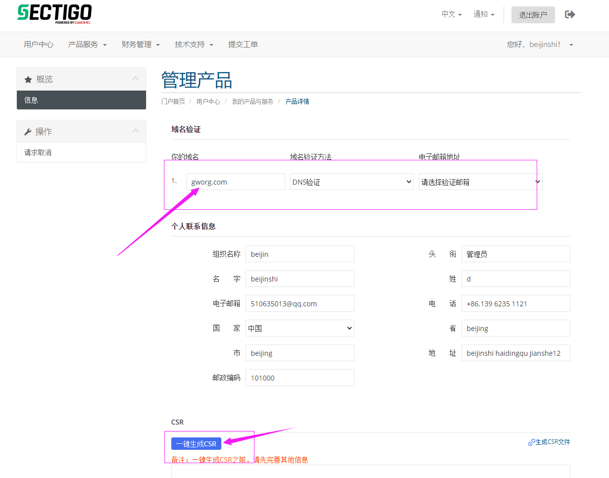 如何使用Gworg申请SSL证书,如果有不懂的地方可以联系Gworg帮助申请。