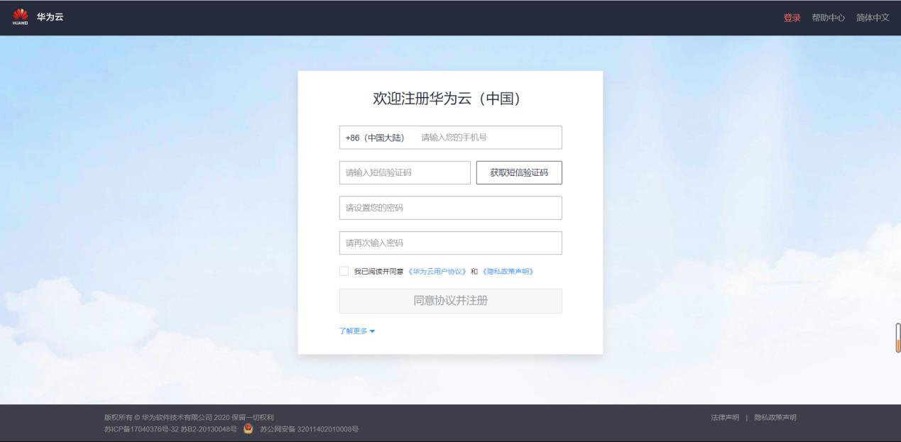 1. 登 录 华 为 云 官 网 注 册 账 号 : https://reg.huaweicloud.cn/registerui/cn/register.html?service=https://bbs.huaweiclo ud.com/forum/thread-52588-1-1.html#/register