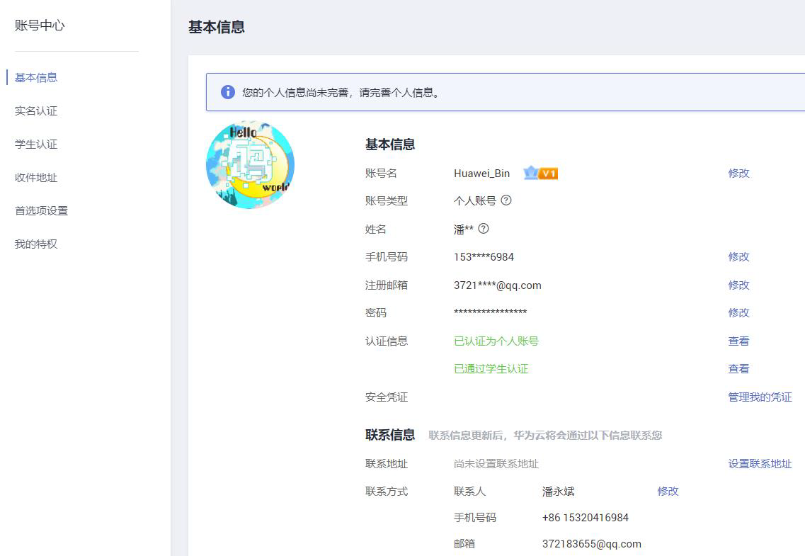 第一步,创建好个人账号,并完成个人和学生认证,领取学生权益(必须完成好, 不然可能会造成不必要扣费)